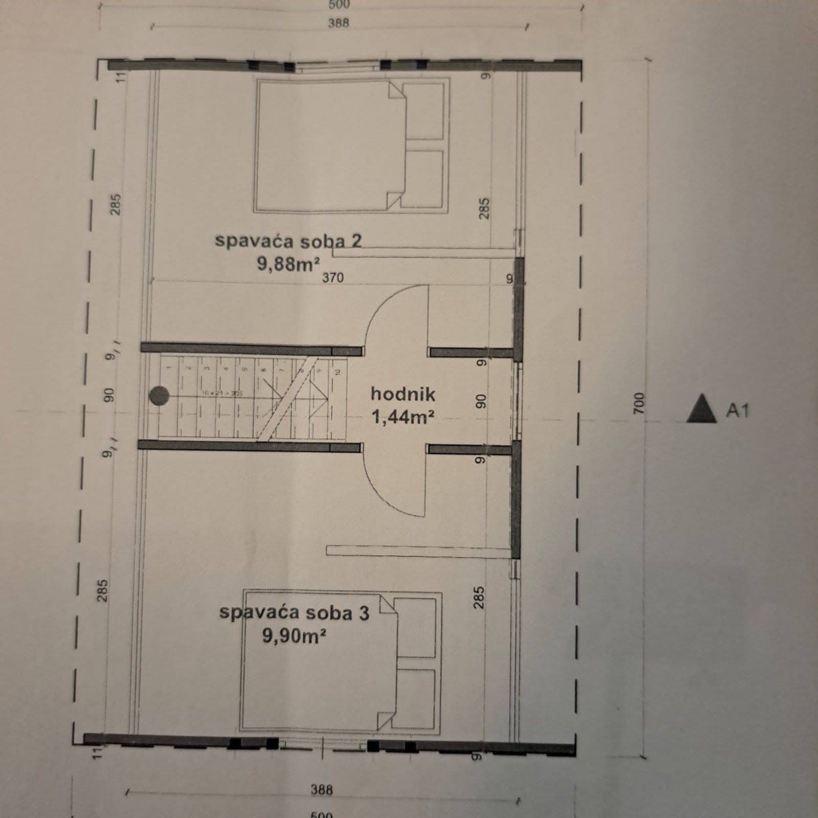 50 τ.μ. με δύο κρεβατοκάμαρες στον 1ο όροφο. (30 κάτω, 20 επάνω.